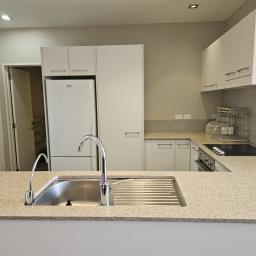 This two bedrooms plus a study room apartment consists of one master bedroom with ensuite bathroom,one double bedroom and a study room. The main bathroom has a bathtub. An open plan combines living and dining,with modern granite benchtop kitchen. The living room opens out to the North East balcony with urban and sea views. Tandem lock-up garage with internal access and storage locker.