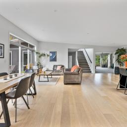 Outdoor living is a highlight, with multiple spaces opening from the main living zones to capture all-day sunshine. The flat, low-maintenance site is beautifully landscaped to offer a true sense of seclusion and privacy.