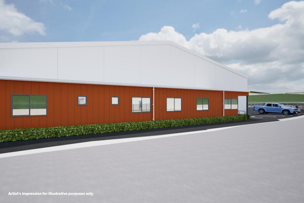 Site 7 at Flight Industrial Park offers a premium industrial facility featuring a 1,354sqm (more or less) high-stud warehouse with four roller doors, office space, a meeting room, and amenities.