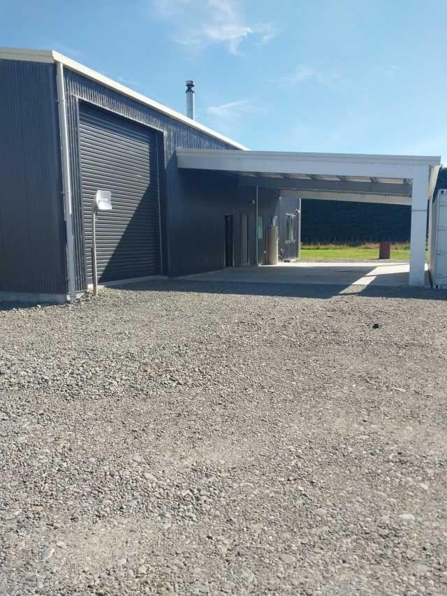 90m2 workshop, drive through, 1 x 4mtr door 1x 3mtr door, large log burner, insulated. 90m2 mezzanine.