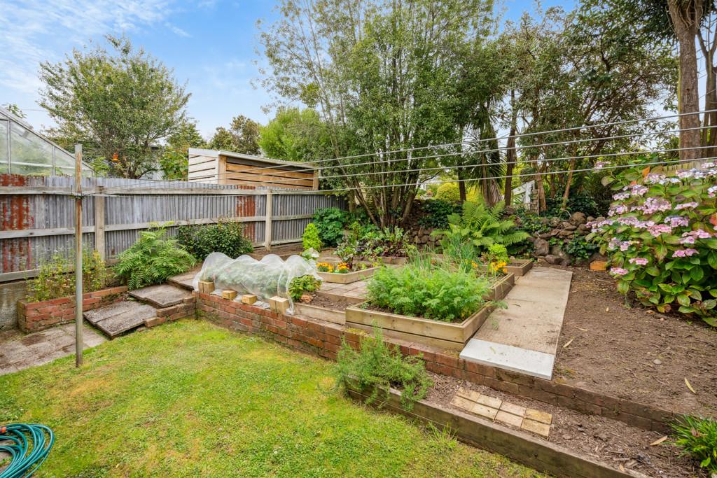 Outside, you'll find off-street parking for two vehicles, along with a basement garage that accommodates one car plus additional storage. The established gardens, complete with lawns, mature trees, shrubs, and vegetable plots, offer a private and peaceful outdoor retreat.