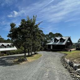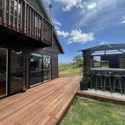 The main house has a fireplace to keep you cosy in winter and a spa pool to relax and soak in while you take in some of the amazing sunsets the property offers