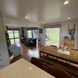 Escape down the long private driveway to a rural retreat nestled on the edge of the Rangitopuni River.