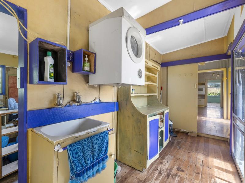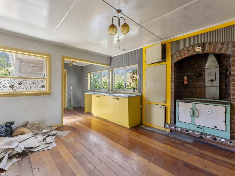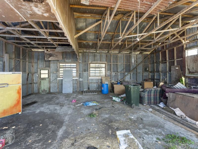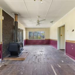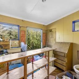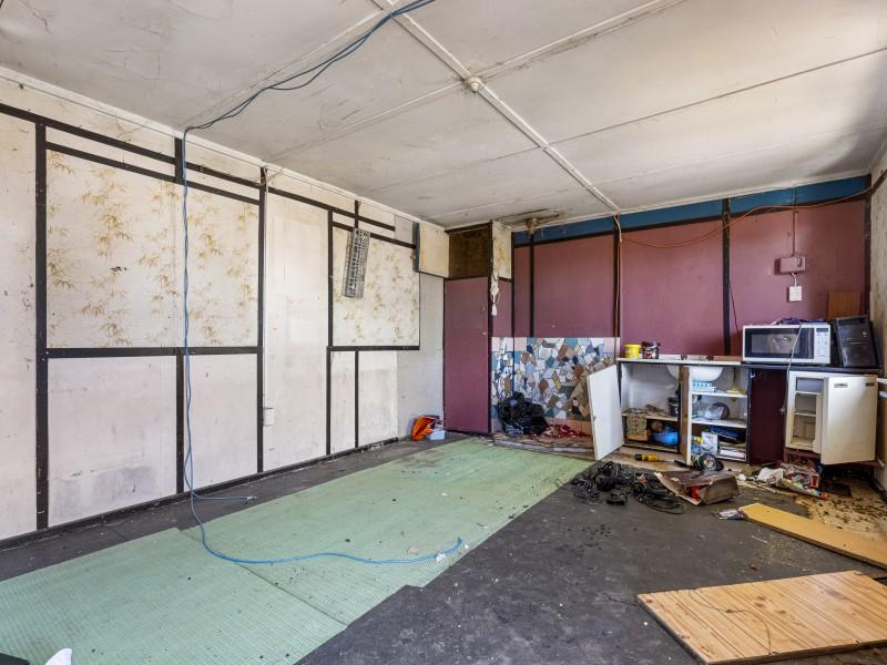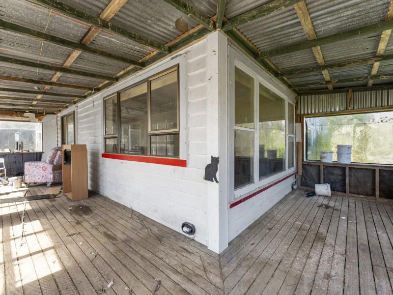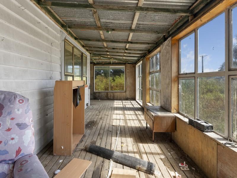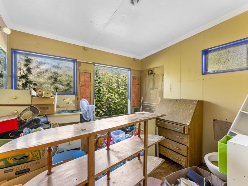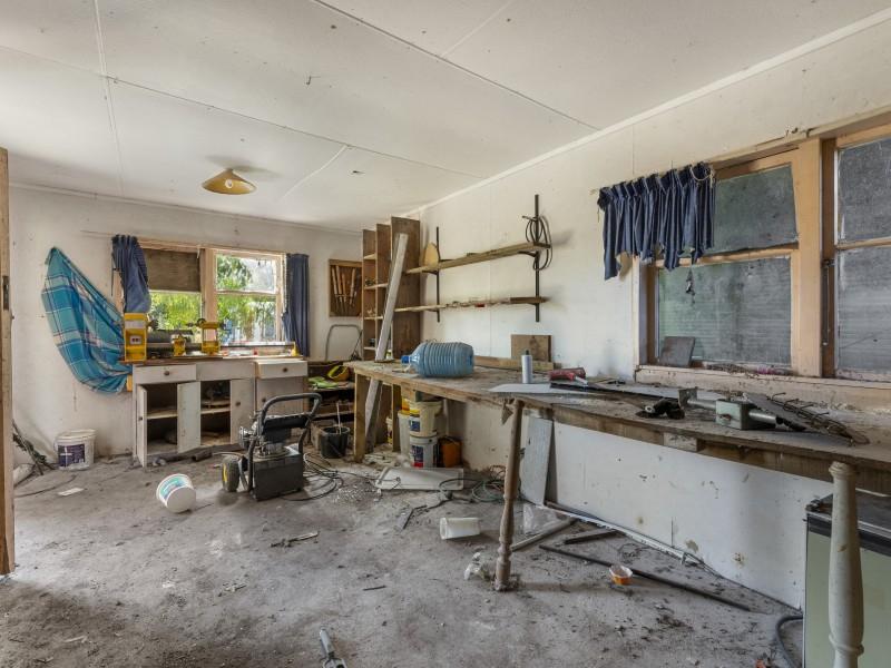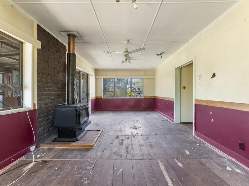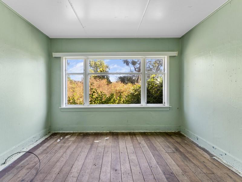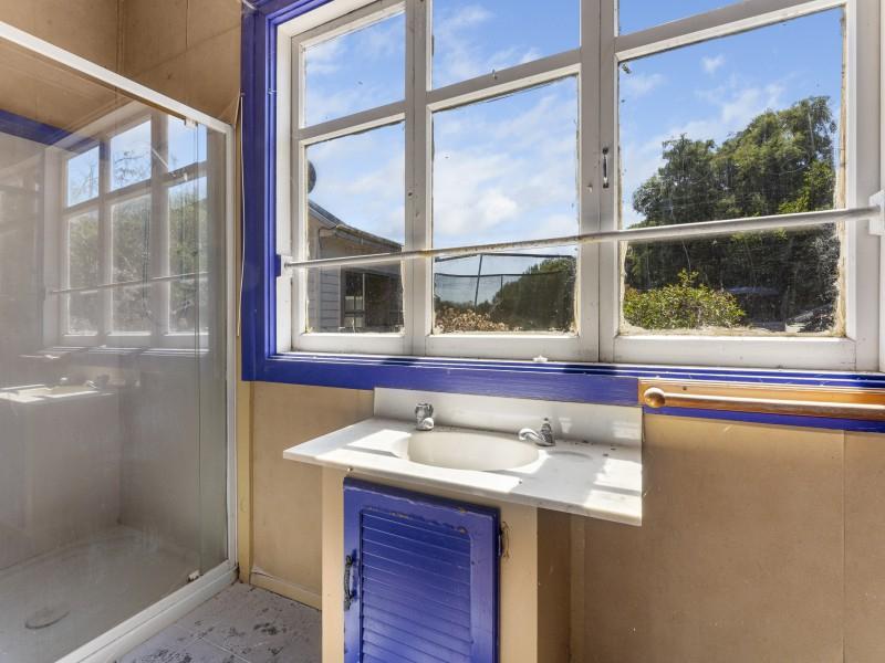 Inside the home consists of three bedrooms and two bathrooms, (one of which has been stripped out with the connections left in place, providing a basic but promising layout to build upon). Be aware however that the interior is in poor condition, necessitating a full-scale renovation, with the residence currently in need of serious love, including the testing of essential services and appliances. A LIM report from local council is recommended and will assist in planning the future renovations.