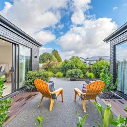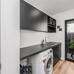 The master bedroom offers luxury with a generously sized ensuite and walk-in wardrobe, plus the second bedroom features a semi-ensuite, providing guests with a comfortable and convenient stay. Additionally, a separate laundry enhances the home's functionality.