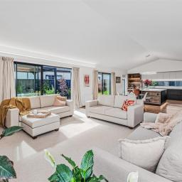 This stunning three-double bedroom home offers a true escape, with Reserve backdrop. Immaculately maintained both inside and out, this property exudes elegance and sophistication at every turn. The kitchen is the heart of the home, designed for entertaining. With a spacious square island, plenty of storage, and a dedicated bar area, it’s ideal for hosting gatherings. The inclusion of both the main fridge and bar fridge elevates your hosting experience to the next level.