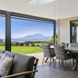 Wake up to breathtaking sunrises over Lake Taupo and wind down with a glass of wine by the outdoor fireplace as the mountains glow golden at sunset. This meticulously crafted 416m² designer residence isn’t just a home—it’s a private retreat, nestled within 4,177m² of beautifully landscaped grounds in the prestigious Acacia Bay.