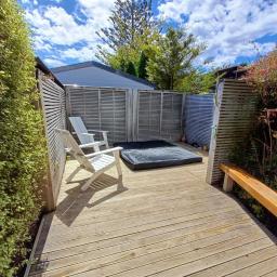 Large deck out the front and additional one to the northside of house with patio,seating area and spa.