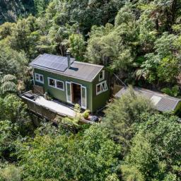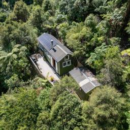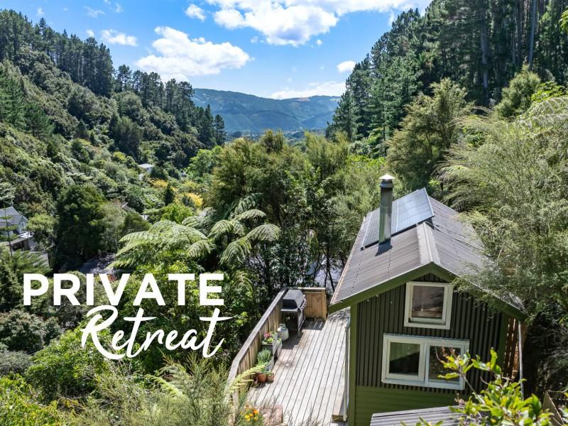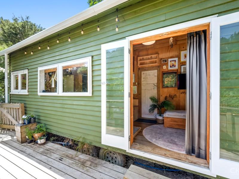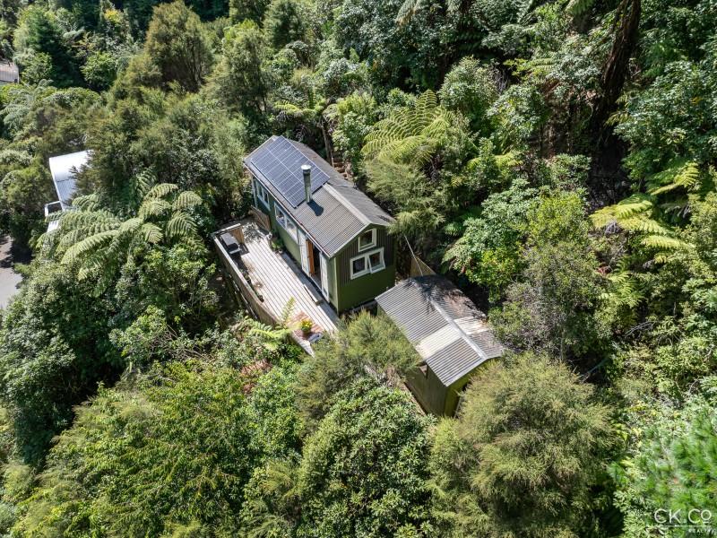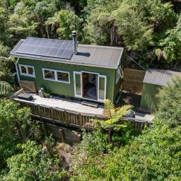 Tucked up away amongst the lush greenery of Pinehaven, With a short walk up, 159 Pinehaven Road offers a truly unique lifestyle---completely off the grid, self-sufficient, and immersed in nature. This charming tiny home is the ultimate retreat for those seeking peace, privacy, and sustainable living.