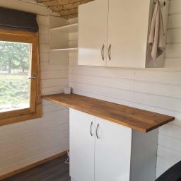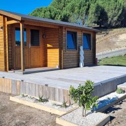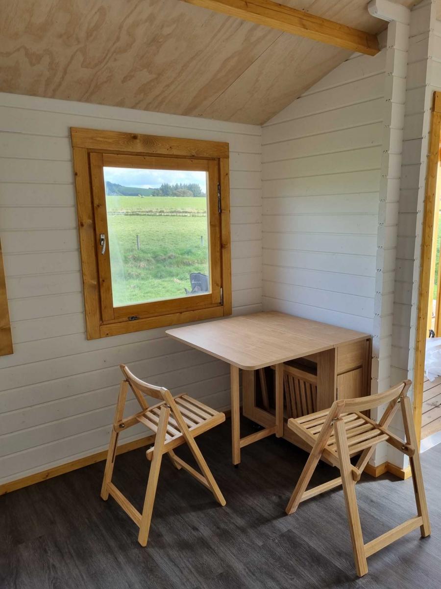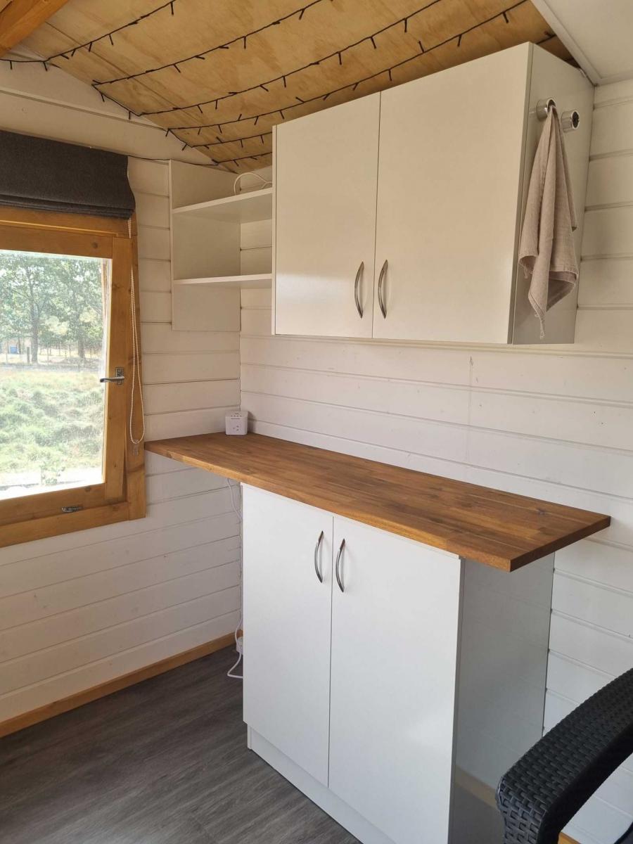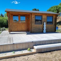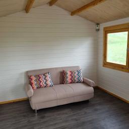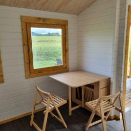 The hut is built on what we refer to as the island (where the creek curves round a piece of land) has double glazing, black out blinds, fly screens on all windows, wood look laminate flooring, installation to roof and flooring, storage cupboards, plug sockets, ceiling light and a cable to attach a generator (not provided)