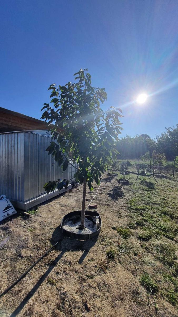 ✔️ Lockable metal shed for storage and 2 x IBC 1000l tanks with irrigation piping and timer for watering the trees (not consumable)