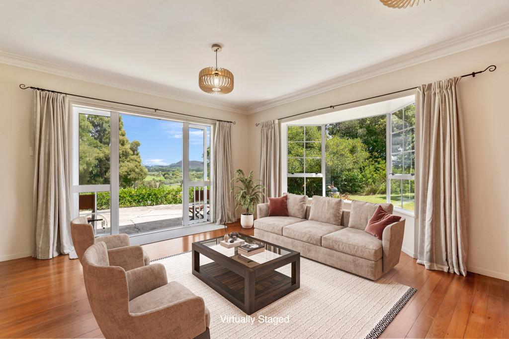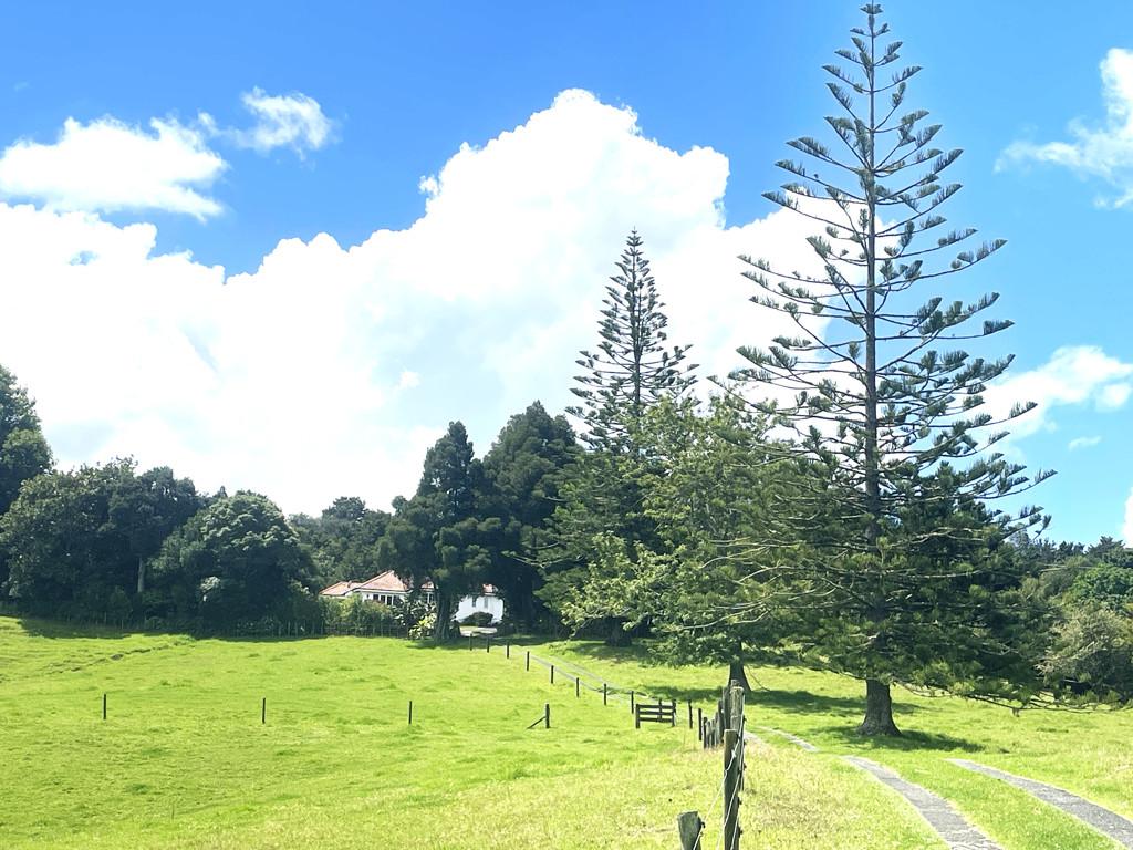 Straight off State Highway 1, you arrive by driving up through your lifestyle block, past the hay barn, woolshed, implement sheds and over super convenient cattle stops. You climb up the hill on the concrete lane drive past massive, beautiful Norfolk pines that are said to be from seed of the very first Norfolks in NZ!