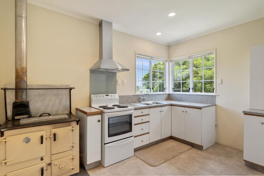 Inside the home, the kitchen with walk in pantry has a classic Rayburn wood burner stove perfect for cooking and cozying up during the cooler months plus there's an additional electric stove plus a dishwasher.