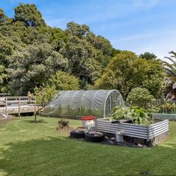 Section: Set on a generous 1285sqm partially fenced section, the grounds feature established fruit trees and a beautifully maintained garden with a tunnel house. This outdoor oasis provides the perfect backdrop for those who love gardening.