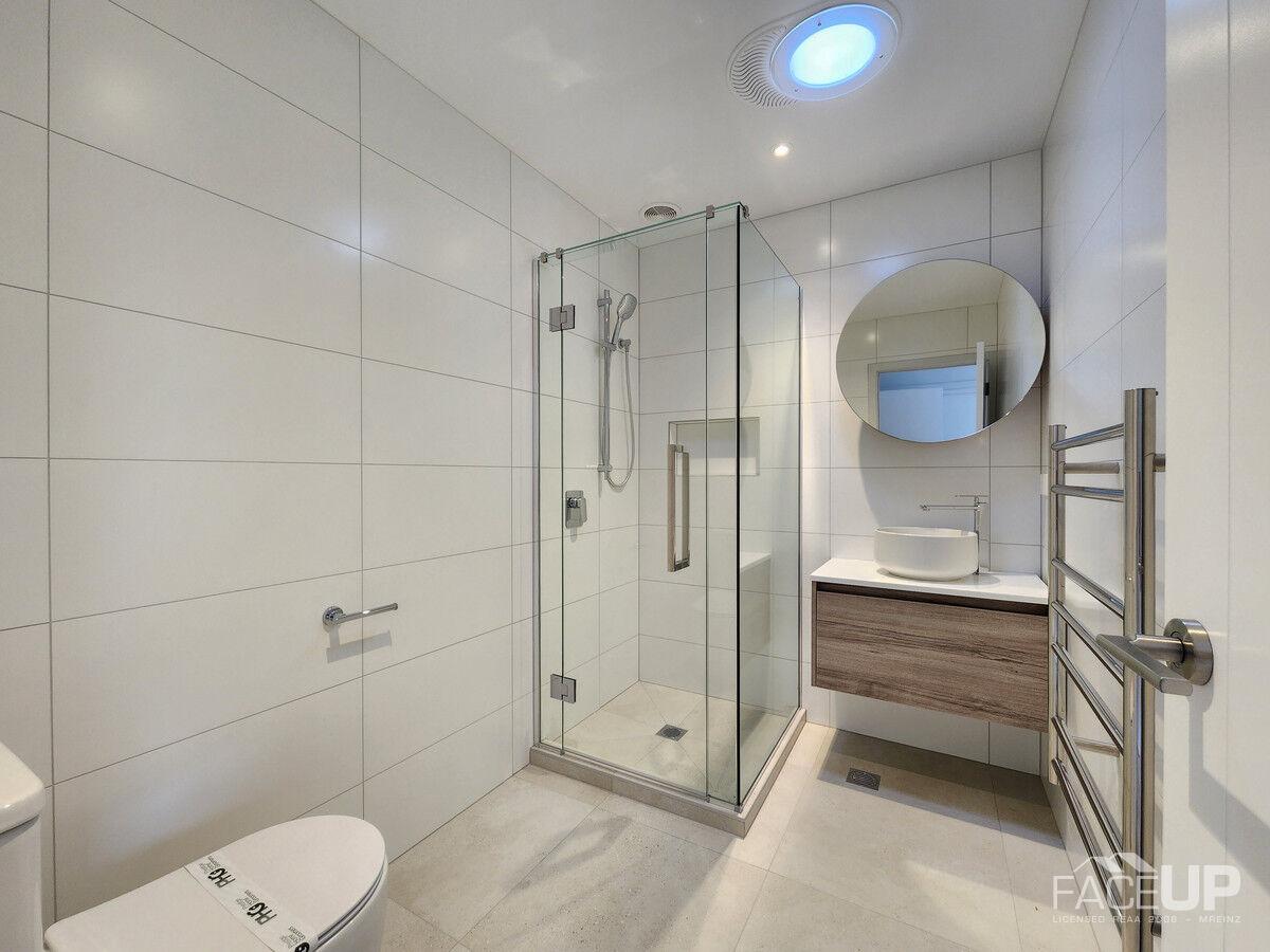On the upper level, basking in natural light are bedrooms 2 and 3. Bedroom 2 is beside the stylishly appointed bathroom and the master boasts a beautiful ensuite and tranquil outlook. Yet more storage is available on this level.