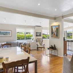 The well-designed layout offers three spacious bedrooms, including a master with an ensuite and multiple living areas tailored for comfort and relaxation. The fabulous conversation pit in the lounge sets the scene for stylish, intimate gatherings, while the spiral staircase leads to a formal lounge or kids' retreat-adding a touch of retro charm.