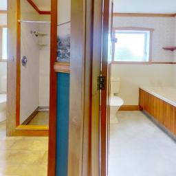 High-paneled ceilings and large picture windows in the living and dining areas draw in natural light, filling the home with a fresh and airy ambience. The living room opens out to a sun-drenched patio, an ideal setting for summer barbecues or quiet moments of relaxation. At one end of the dining room, the newly updated kitchen boats a generous breakfast bar and enjoys peaceful leafy views, making it a delightful space to cook and entertain. Ceiling and underfloor insulation guarantees comfort, along with a Daiken heat/cool pump in the living room and primary suite.