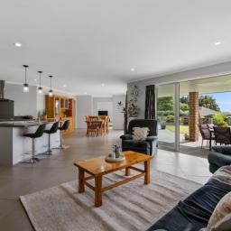Here’s your rare chance to embrace the good life – where every morning begins with striking sunrises and breathtaking views over rolling green hills, Tauranga Harbour, and Mount Maunganui. This generous brick home offers space for everyone to spread out, with four well sized bedrooms, open plan living, and a separate lounge for quiet retreats. The kitchen sits at the heart of the home, flowing seamlessly to a covered outdoor patio where those spectacular views take centre stage.