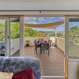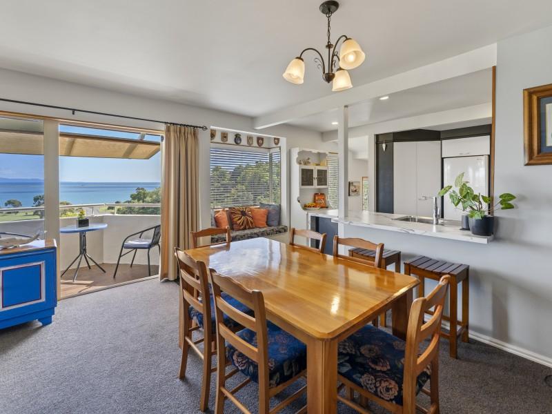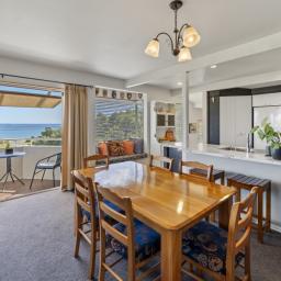 The well-appointed kitchen flows seamlessly into the open-plan dining and lounge area, where large windows frame the spectacular coastal panorama. Step out onto the sun-drenched deck - an ideal spot to soak in the views with your morning coffee or unwind in the evening as the sun sets over the water.