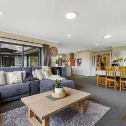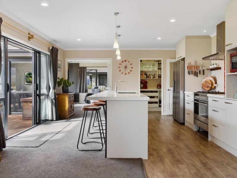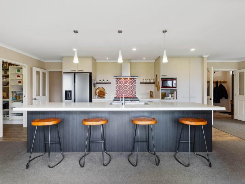 Crafted for multigenerational living, blended households, income seekers, or those wanting independent living wings, the layout provides exceptional flexibility. The main home features four oversized double bedrooms, including a superb master suite with walk-in wardrobe and ensuite. Multiple living spaces include a dedicated media room, generous home office, and expansive open-plan kitchen, living, and dining warmed by log burners and ducted heat pump system. The kitchen offers every convenience including a walk-in pantry, freestanding gas hob, large island, and seamless indoor-outdoor flow.