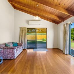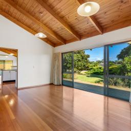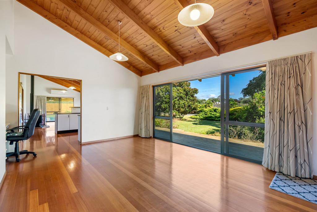 The home boasts three generous bedrooms plus a study, providing flexibility for a home office or an additional bedroom. Themaster suite includes a private ensuite, while the remaining bedrooms are well-serviced by a spacious family bathroom with aseparate toilet. The thoughtfully designed layout includes a formal lounge, as well as a light-filled open-plan kitchen, dining, andfamily room that seamlessly extends onto a sun-drenched deck. This outdoor space is perfect for alfresco dining, entertaining, orsimply enjoying the peaceful surroundings while the children play in the beautifully maintained gardens.
