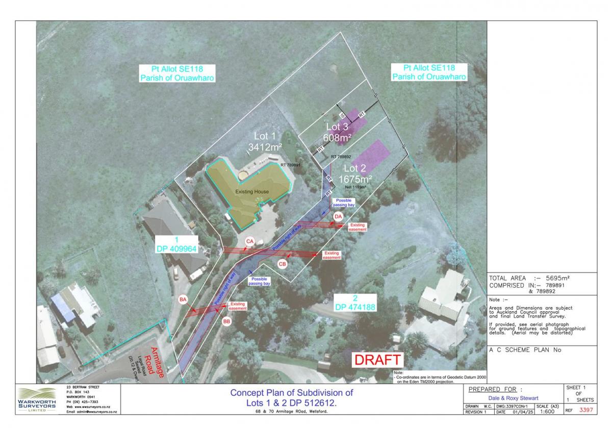 An additional option is the opportunity to purchase the adjoining land, allowing for a larger site to enjoy or potentially subdivide in the future. The vendor is open to discussing this option and has provided a plan outlining a proposed subdivision."