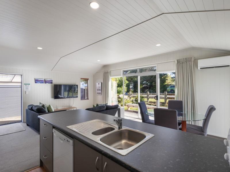 The chalet has two bedrooms, one bathroom which also houses the washing machine and dryer, and open plan living spilling out on to the front deck. The attached carport also has lock up storage cupboards at the back. This is coming fully furnished so you can walk right on in and enjoy it straight away.