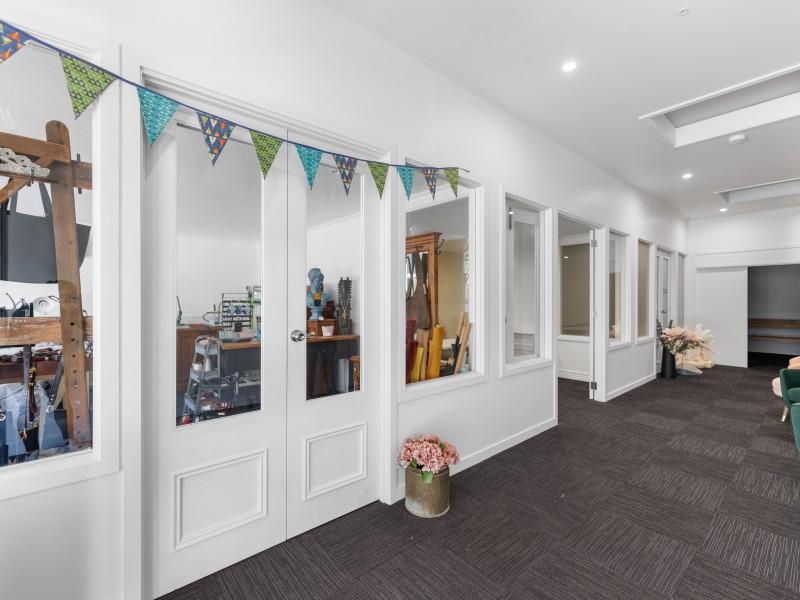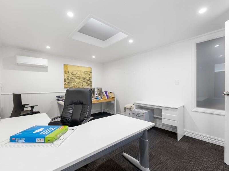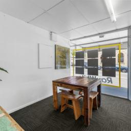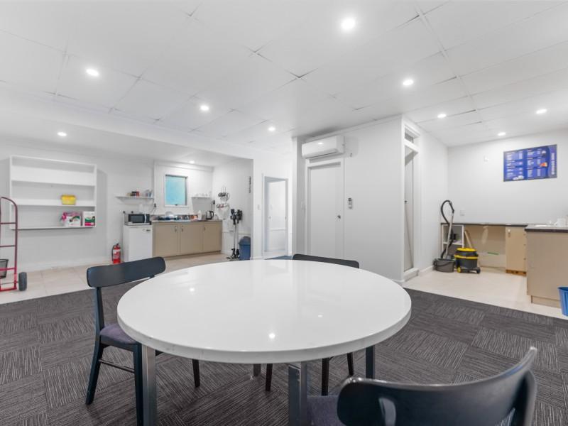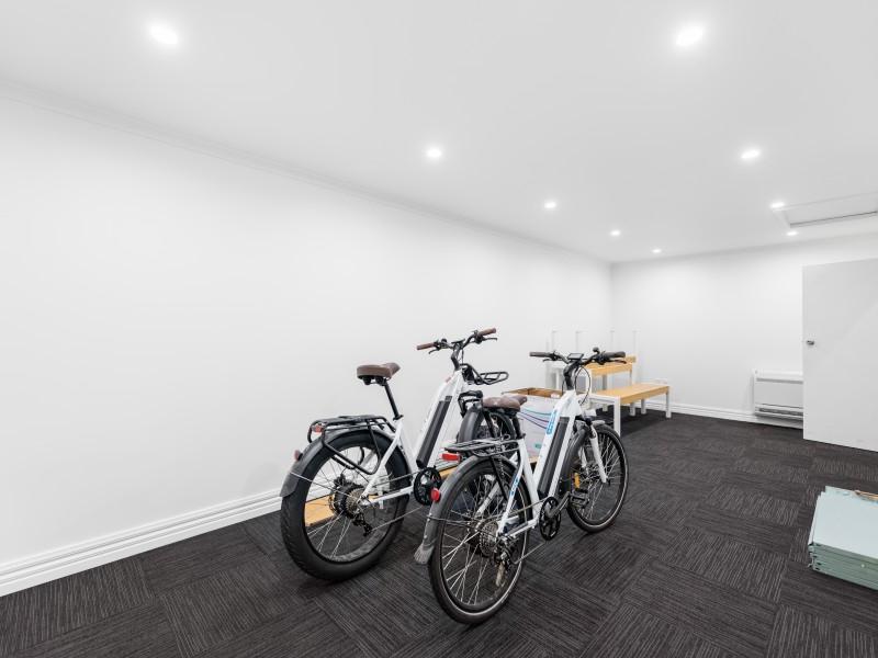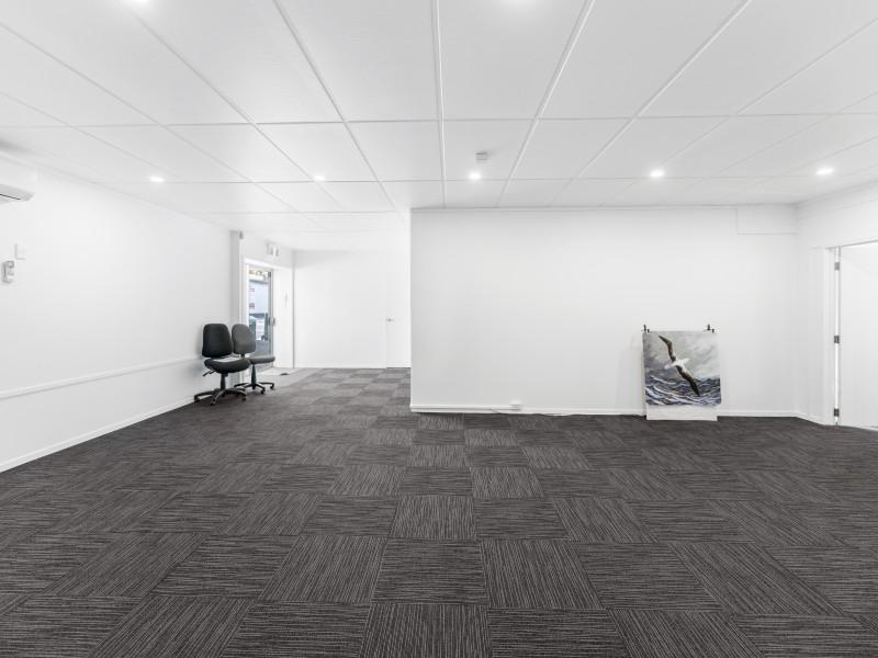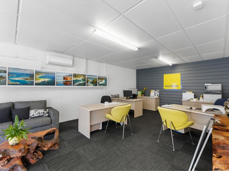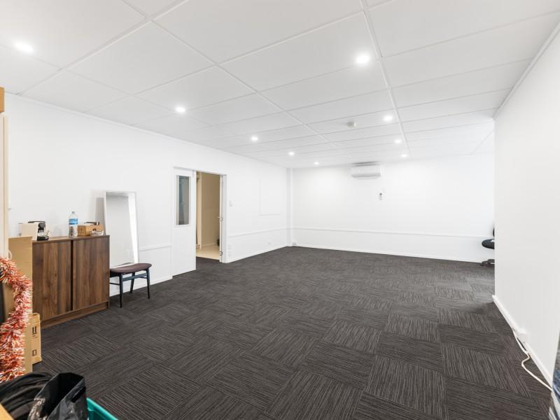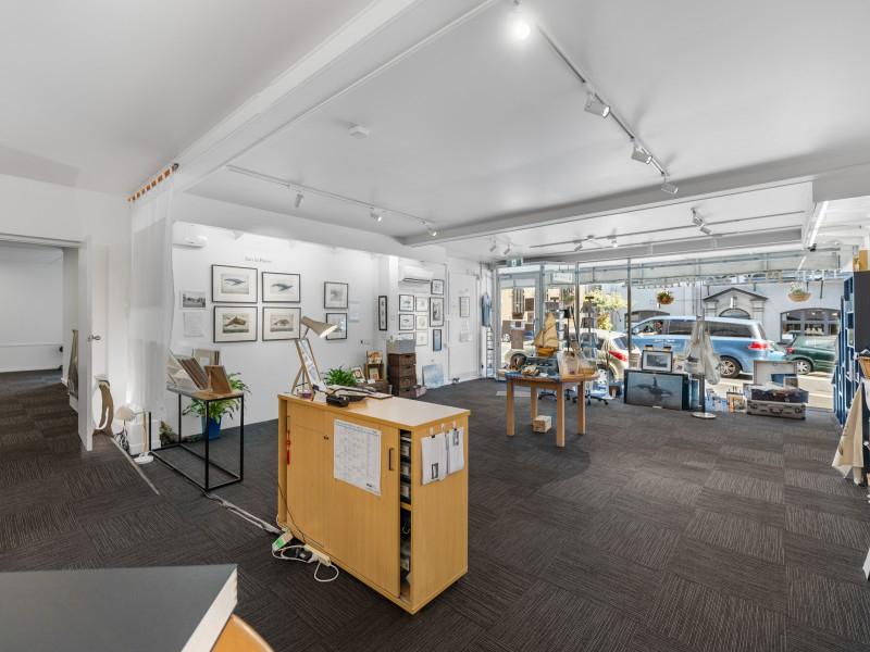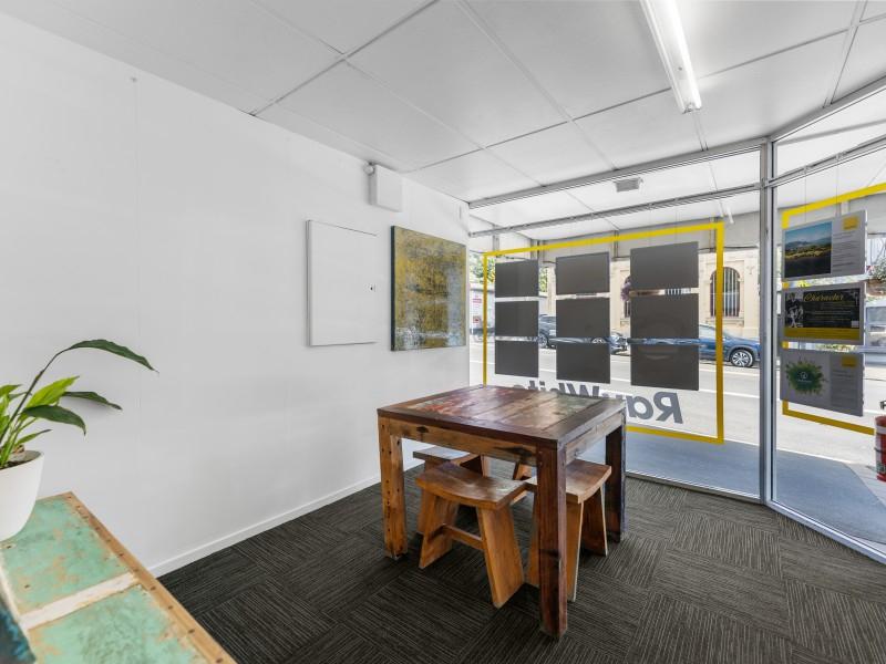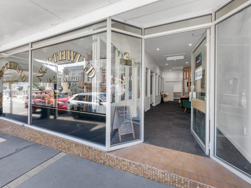 Two well-equipped kitchenettes and shower facilities are available for added tenant use, and there is excellent storage throughout the building. Off-street parking is available for convenience, with parking on the main street readily available too.