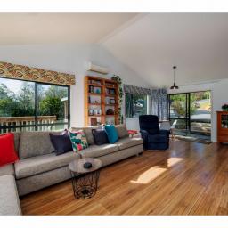 This home overlooks a picturesque little stream flowing into a small wetland with lovely bush backdrop.