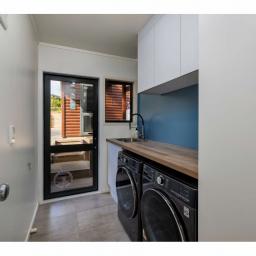 • Modern kitchen with gas cooktop, electric oven and twin drawer dishwasher