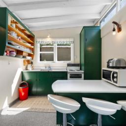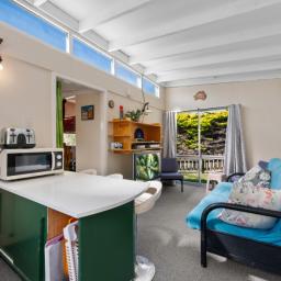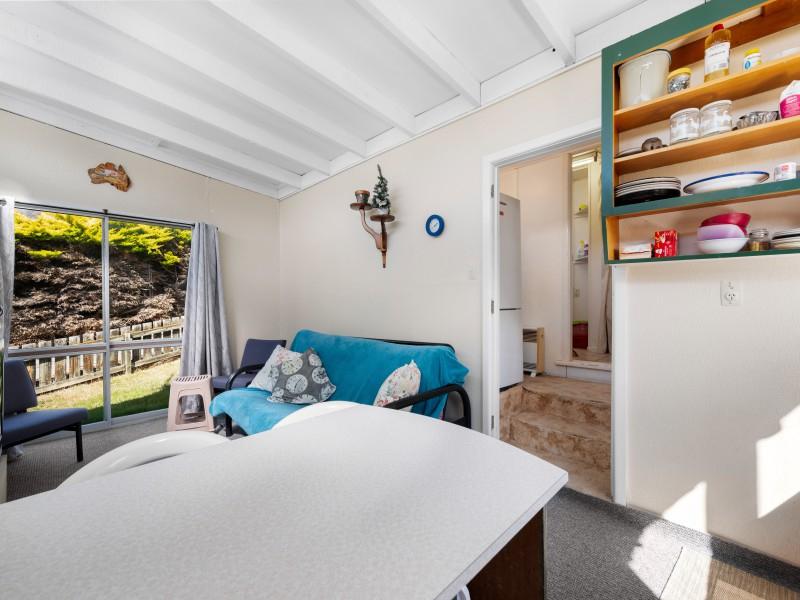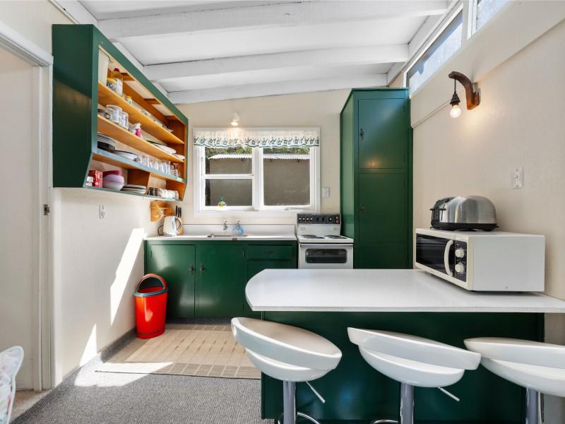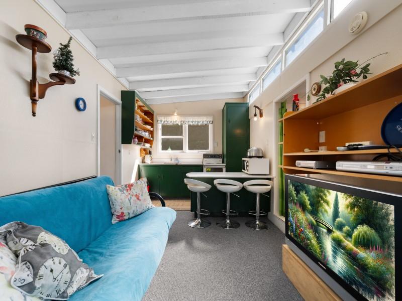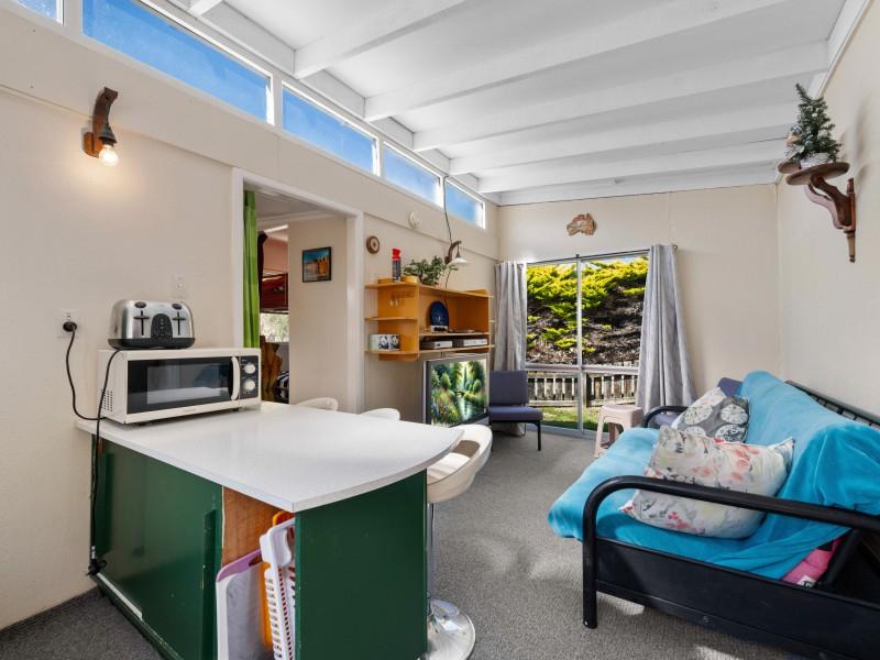 1950's quintessential crib to the fore with 15 year ensuited sleepout bringing up the rear. Location is superb with elevation to build further down the track in the lee of Ladybird hill should you desire .