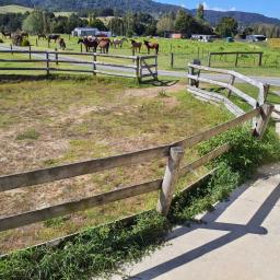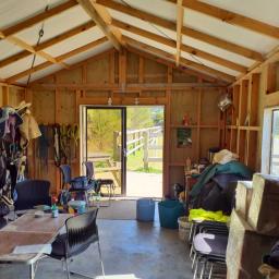 Purpose-built tack/feed room (built 2021) 24 sq m with adjacent concrete pad for horse trailer parking & horse washing.