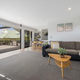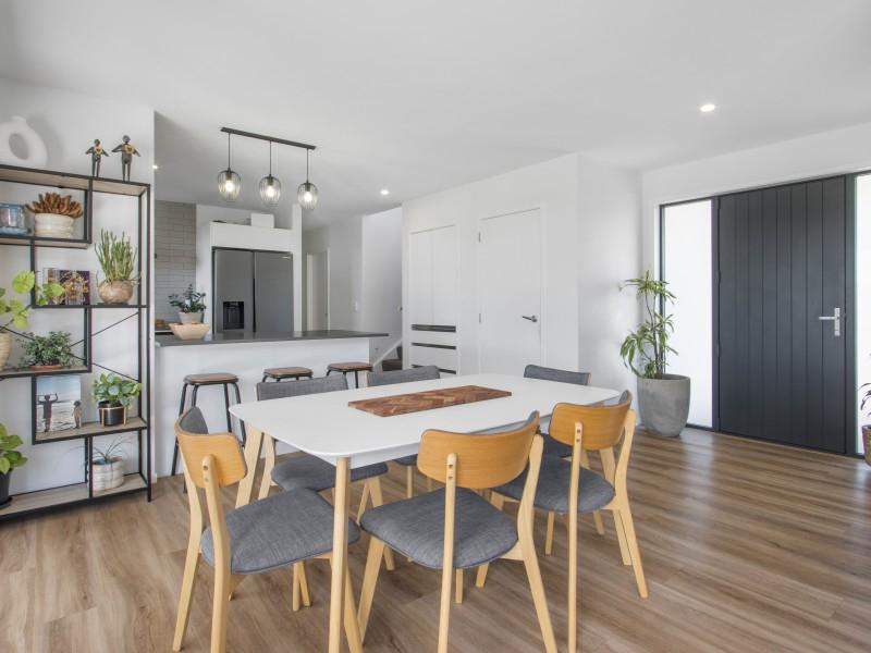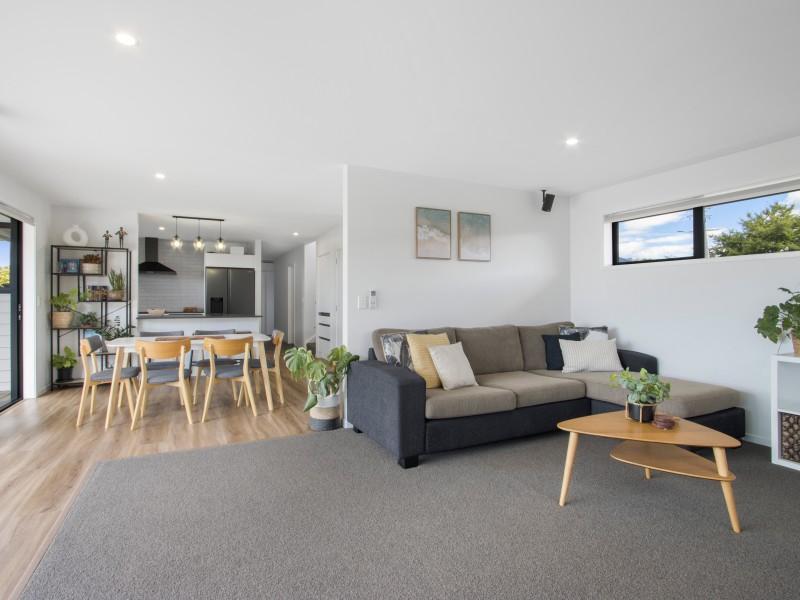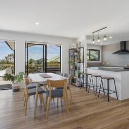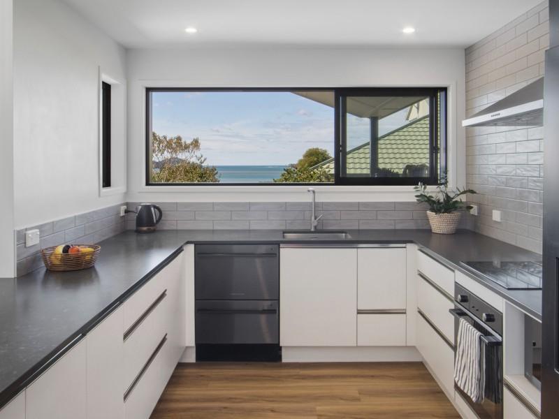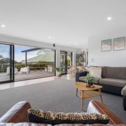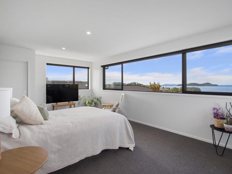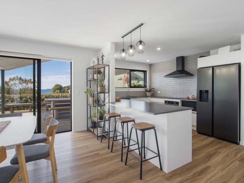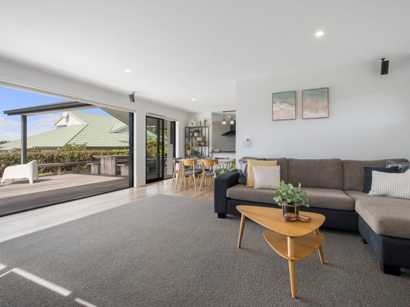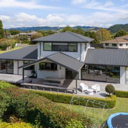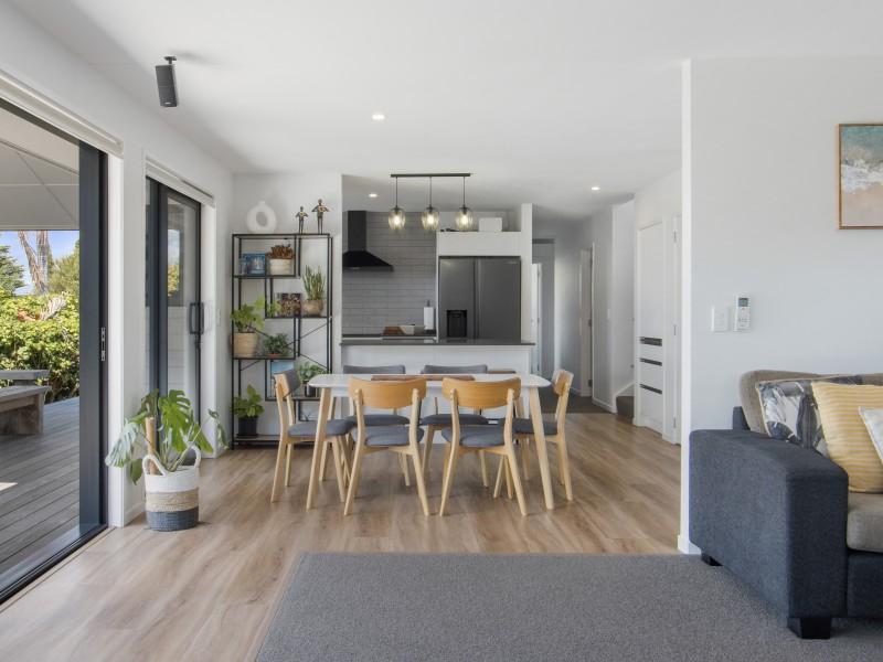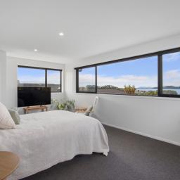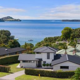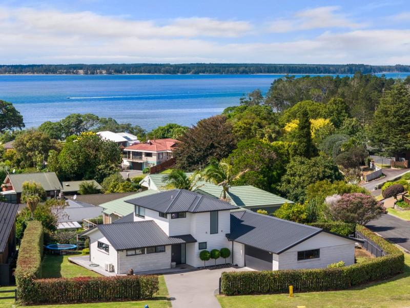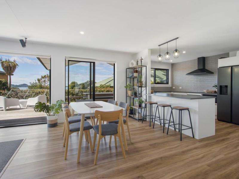 This near new modern in design family home is set in an elevated position on a large, flat 837sqm section with views to the inner harbour, Bowentown Heads and Mayor Island. The home is light and airy with neutral décor, open plan living spaces that spill to an inviting, private, covered outdoor area perfect for relaxation and entertaining. A fully appointed kitchen will appeal with a large extra storage room or potential walk-in pantry, up spec appliances and excellent connection with the indoor and outdoor living spaces. Bonus too of electric blinds in the living area for ease of operation. The spacious main bedroom is privately set in its own wing on the upper level with large sliding windows to soak up the views, two double wardrobes and a good size ensuite. There are three double bedrooms on the ground floor a family bathroom and internal access double garage. Easy care gardens frame the home with plenty of room to add extra plantings, and there is off street parking for a boat or camper and room for kids and pets to safely play. The home also has the benefit of fibre being installed, and a security alarm if a lock up and leave property is on your wish list. For boaties and seaside lovers, an all-tide boat ramp and coastal walks are close by and the bus stop to Katikati schools just across the road. If you are looking for a low maintenance, well insulated and spacious family home within a serene coastal setting then this may just be the one for you!