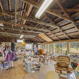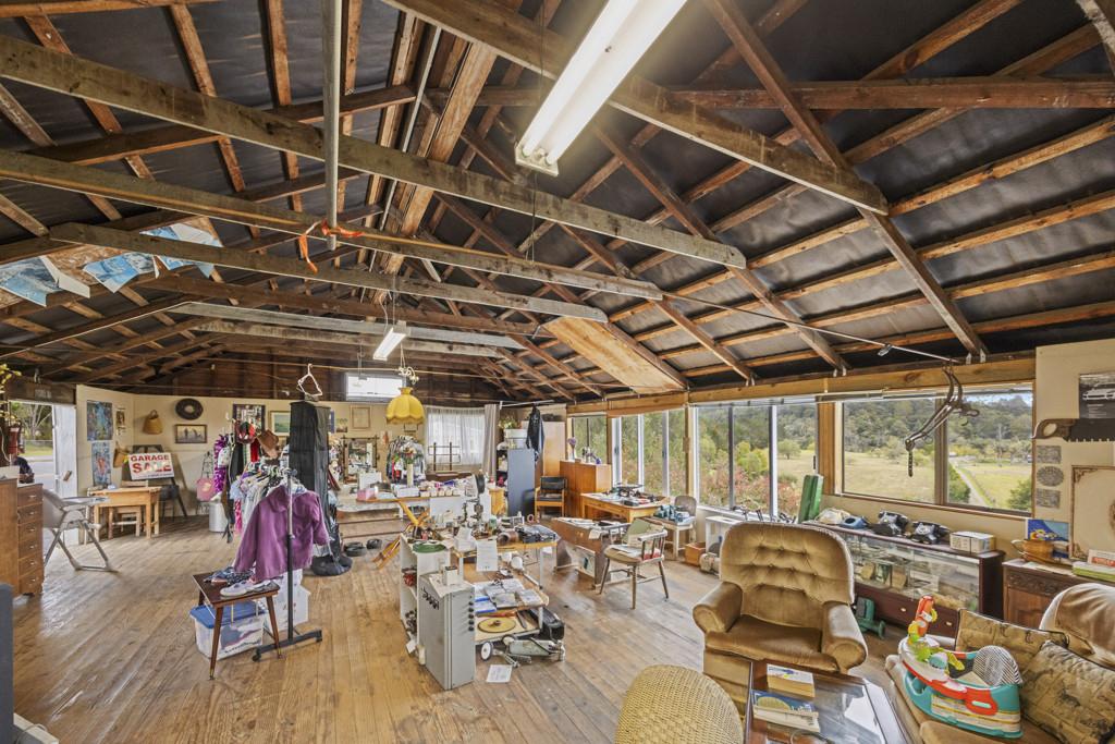 The character-filled two-storey shed, boasts classic tongue and groove pine floor upstairs, and a equally sized downstairs basement once used for wine and apple box storage. Recently reroofed and rewired, it retains its rustic charm.