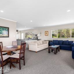 Designed for relaxed living, the open-plan kitchen, dining, and lounge flow together effortlessly, framed by ever-changing ocean views. Slide open the doors from the living room or two of the spacious bedrooms and let the sea breeze roll in as you soak up the sun on the deck.
