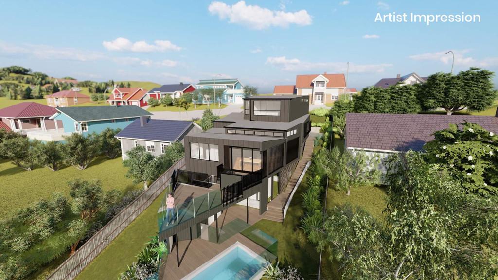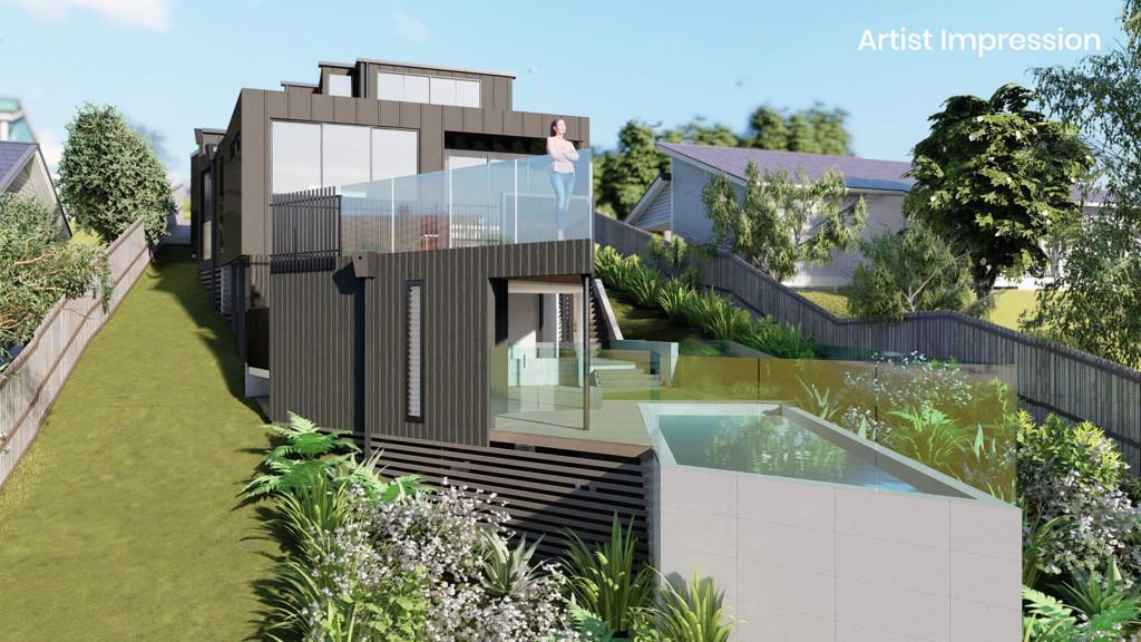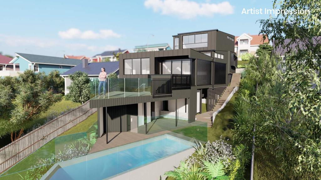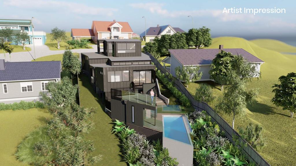 Create your ideal home, which could be this beautiful design with detailed plans, ready to go for building consent. The architect can also create a simpler house design, with 2 pods above each other, taking into account all aspects of the section.