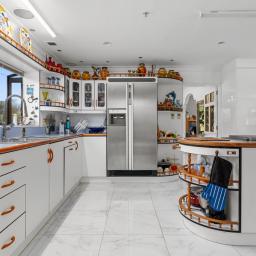 Built in 2005, featuring four spacious bedrooms, including a master with an ensuite, two additional well-appointed bathrooms, and four separate toilets. The open-plan design encompasses a combined lounge and dining area, a separate family room with a bar, a formal lounge, a formal dining area, and a study. The chef's kitchen is equipped with high-end Gaggenau Italian appliances. For year-round comfort, the home includes a central ducted heating/cooling system, a freestanding tile fire, and excellent insulation.