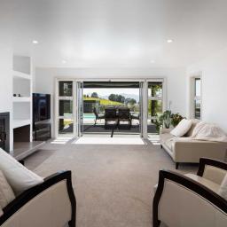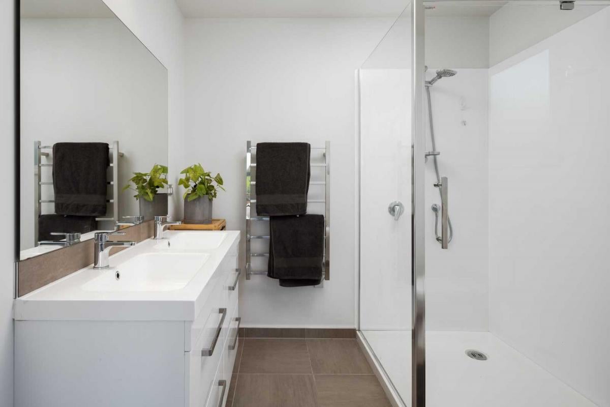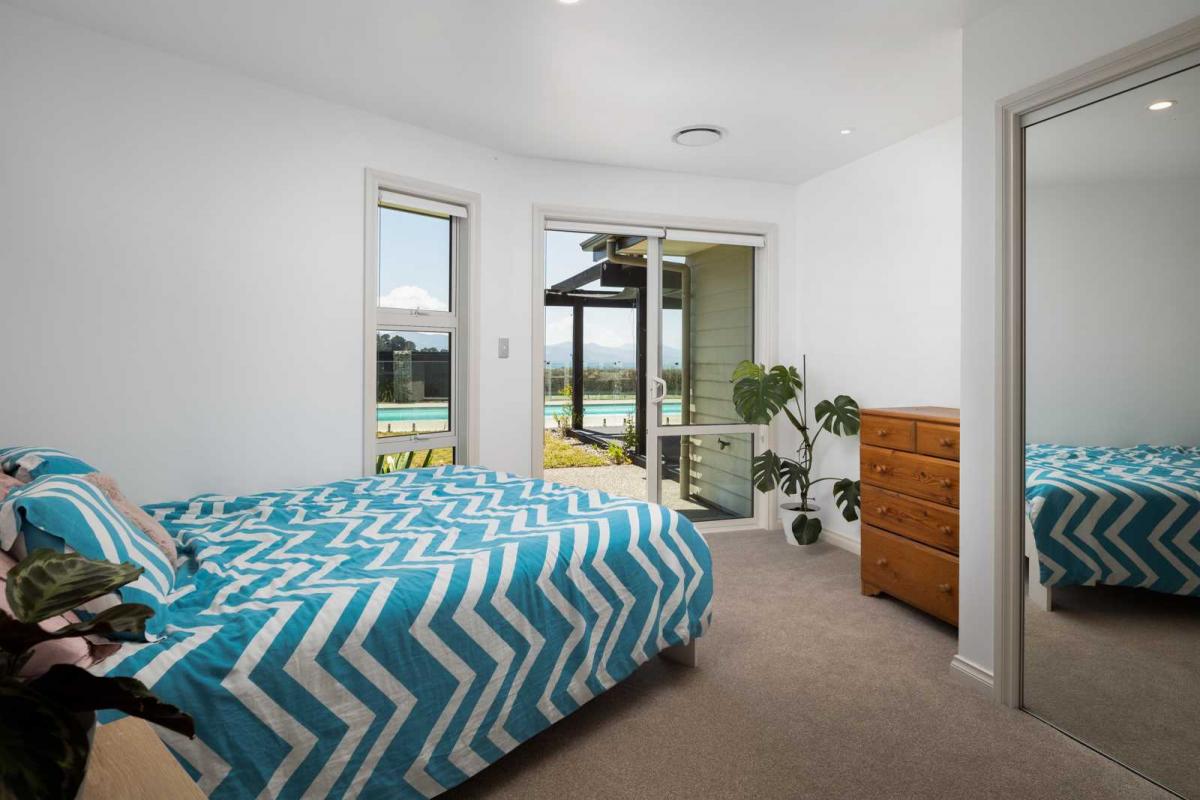 Two expansive living areas provide the perfect spots for movie nights, games, or quiet unwinds. A wood burner in the main lounge brings the winter vibes, while a ducted heat pump system warms (or cools) all the bedrooms, and a separate heat pump in the kitchen keeps the heart of the home comfortable year-round.