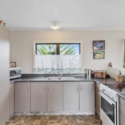 Step inside to find a modern kitchen that seamlessly flows into an open-plan dining area, creating the ideal space for entertaining. The lounge/dining area is bright and inviting, with large windows that frame picturesque rural views. Enjoy the warmth of the electric stove and wetback hot water system, complemented by ceiling, wall, and floor insulation for year-round comfort.