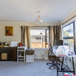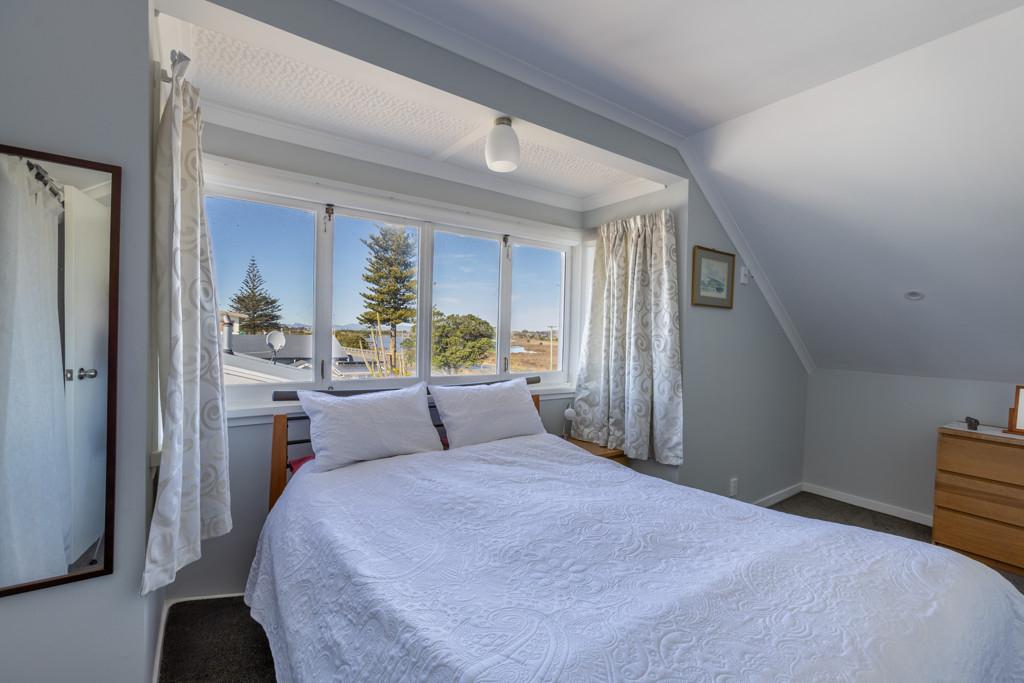 This charming three-bedroom, two-bathroom home blends character with comfort. The private master suite upstairs includes a walk-in wardrobe and a balcony perfectly positioned for Westshore's signature sunsets, while the ground floor provides flexible living with a generous lounge and a dining or office space opening to the garden. French doors lead to a covered deck ideal for year-round entertaining, and the well-designed kitchen offers excellent bench space and smart storage. Modern comforts such as mostly double glazing, two heat pumps and insulation ensure the home feels great in every season.