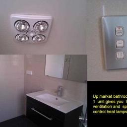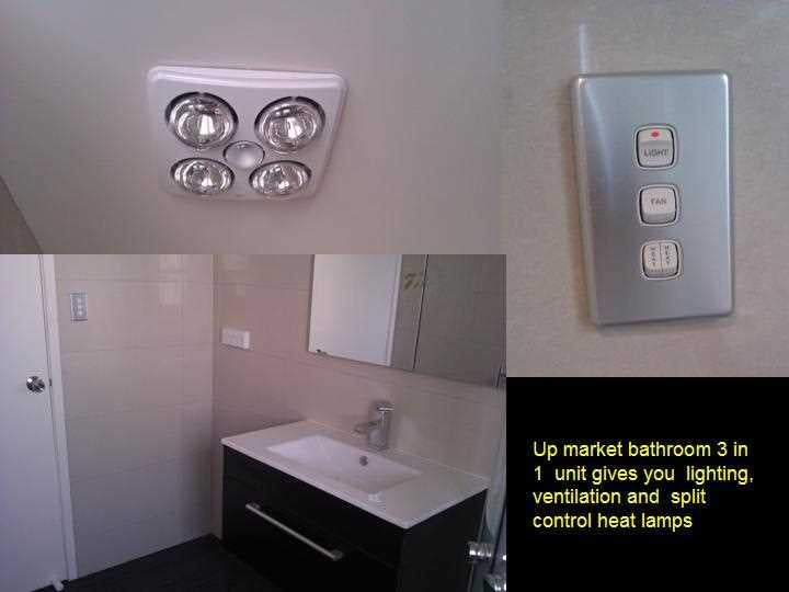 Heat pump, rangehood, stove, 9x curtains and blinds, all downlight fittings, 2x heat lamps units with exhaust fans and lightings., 5 bars heated towel rail.