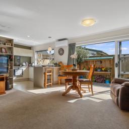 The open-plan living and dining area feels bright and welcoming, offering a great space to relax or entertain. The adjoining kitchen comes equipped with an electric stove and rangehood-everything you need for easy everyday cooking. A heat pump keeps the home comfortable through all seasons, and the electric hot water system adds to the overall convenience.