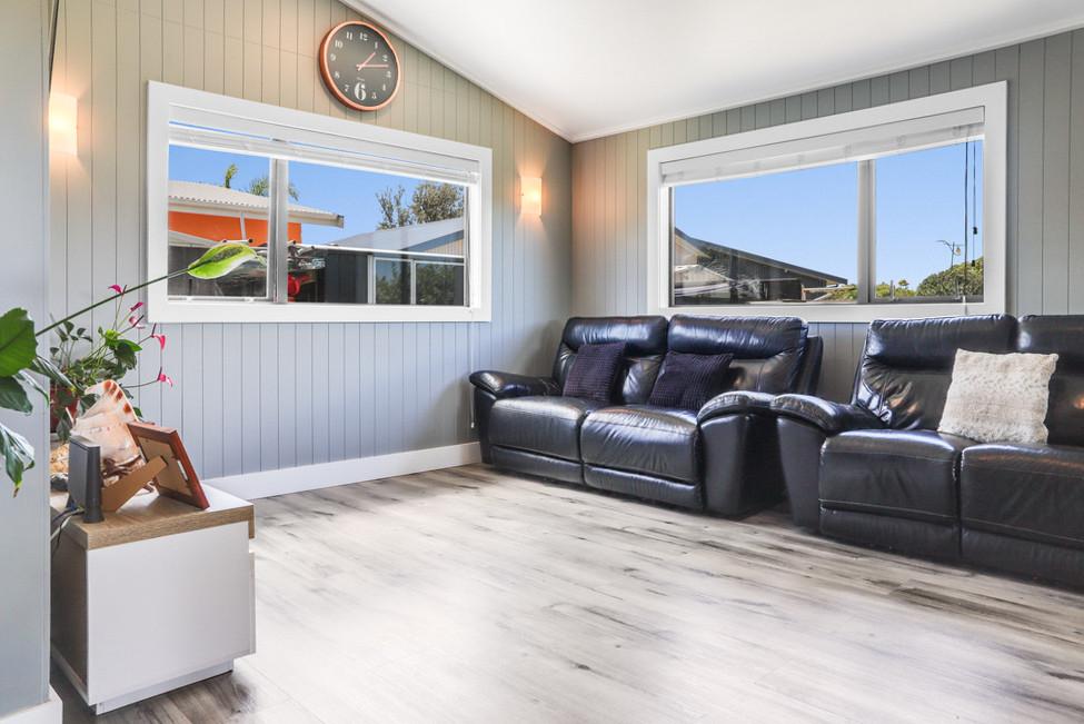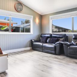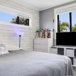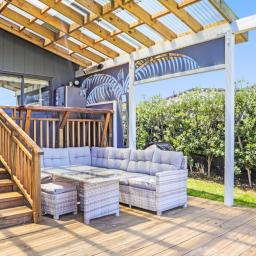 Enjoy this fantastic holiday home with beautiful Matarangi beach only a short 8 minute walk for a relaxing swim. The high ceiling gives a spacious feel to the open plan lounge, dining and kitchen area. Step out onto the fabulous deck space (partially covered) to watch the golfers on the 6th fairway or relax and enjoy a quiet drink while the smoker cooks your days catch. The stylish barn door separates the 3 bedrooms and family bathroom from the living area. The master bedroom has an ensuite, walk-in-wardrobe and ranchslider onto the deck. Lots of clever storage in the hall cupboard or roof cavity. The Dunes golf course and restaurant is a short stroll away and the estuary is an easy drive to launch your boat. Two garden sheds with plenty of room for the beach toys.
