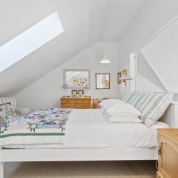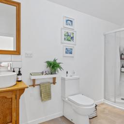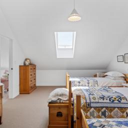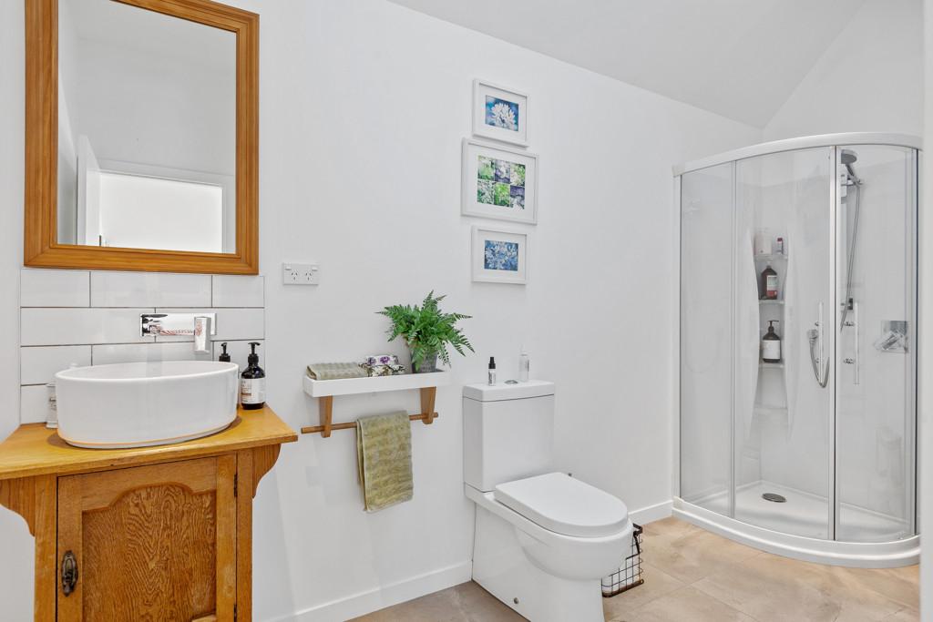Upstairs, two large bedrooms with built-in wardrobes are serviced by a bathroom containing toilet, shower, and vanity. There's an appealing alcove at one end of the landing, and box-room storage and attic space at the other.