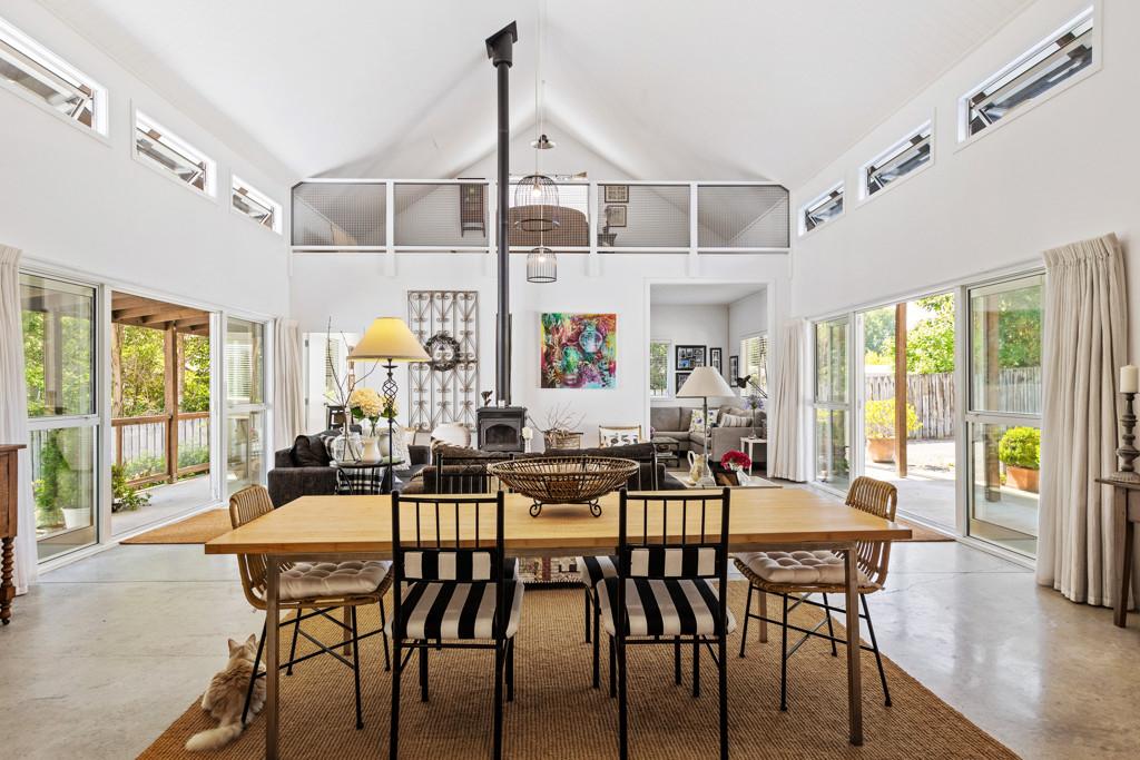 Central, open-concept living encompasses the gourmet kitchen, scullery, dining space and integrated lounging areas, opening seamlessly either side to private outdoor terracing. A further living space offers more intimacy - currently a media room - while an adjacent room caters superbly for an office, studio, or guest room. Above, a fabulous, warm loft area overlooks the living below, lending itself as an artist's studio, or exceptional guests' haven.