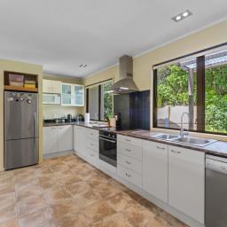 The 212sqm home combines character with practicality consisting of an expansive open-plan kitchen, complete with a butler's pantry. Flowing effortlessly into the dining and living areas, creating a space perfect for entertaining, ranch sliders open onto a covered patio, inviting you to enjoy the tranquil outdoors.