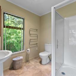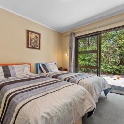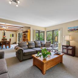 With four spacious double bedrooms and a single, including a master suite upstairs with a walk-in wardrobe and ensuite, this home offers comfort and privacy for the whole family. Two of the bedrooms downstairs open to the covered deck area, creating a seamless connection with nature. A separate toilet and bathroom provide additional convenience.