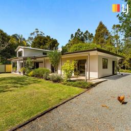 Offering the perfect blend of seclusion and natural beauty this 1.46Ha property is located in the foothills of the Brynderwyns. The house is surrounded by lush mature gardens and towering natives such as kauri, rimu, and nikau.
