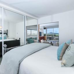 King sized main bedroom and a smaller second bedroom (still suitable for a queen bed) or work from home. Both bedrooms have ample built in wardrobing with the master featuring harbour views.