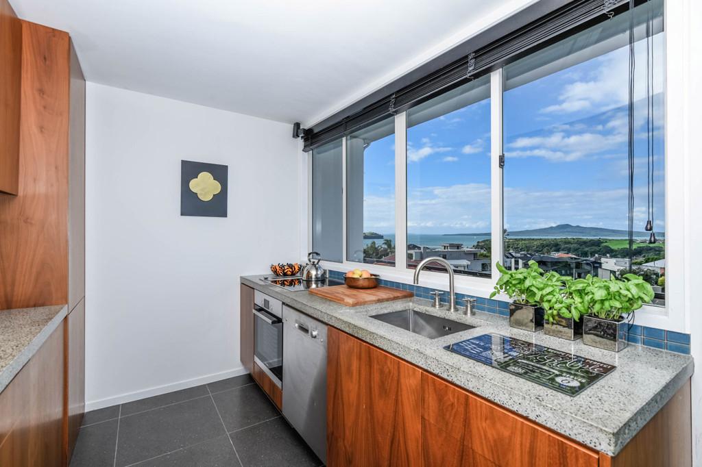 Live in an iconic 1960s modernist apartment block by renowned architect Kenneth Albert. Expect modern living with restored character features. The modern galley kitchen overlooks Rangitoto island with lots of bench space for cooking up a storm. Spacious open plan living featuring on trend tiled flooring opening to a deck that runs the full length of the north facing side of the apartment. Sliding doors provide for excellent indoor outdoor flow - an entertainers dream during the warmer months. Wake up to morning coffee on the deck & retire to your luxurious apartment in the evening to enjoy a wine or two with friends.